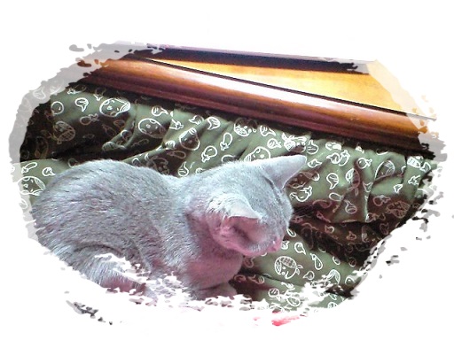 炬燵の中でのテモとニャン : : : : : : : : : :: : : : : 動かないってこと は仲がいい の かな