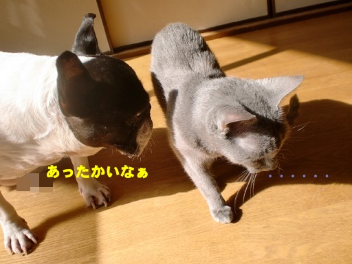 日向ぼっこしてた時の事・・・ 暖かかったからニャンに話しかけてん:::暖かくて気持ちええなぁ::もう