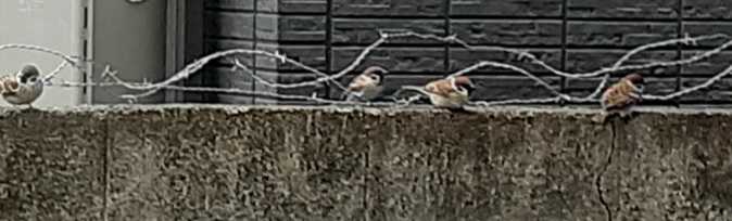 寒いのに窓際迄来てくれたチュン子ちゃん達やっとこれ位の近さで撮れたと喜んでる婆ちゃんです画像が粗い・・・寒くても来てくれてるチュン子ちゃん達いつもありがとです(テモ)