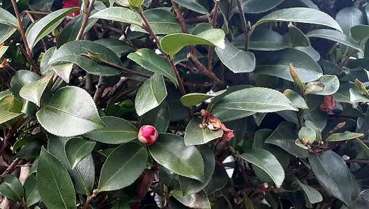 婆ちゃんが通る道に咲いてた誰かさんとこの木寒いのに咲いてたよこれは:::寒くてもたくましくしっかりと掴まってる抜け殻 蝉さんテモは布団の中いつもありがとです(テモ)