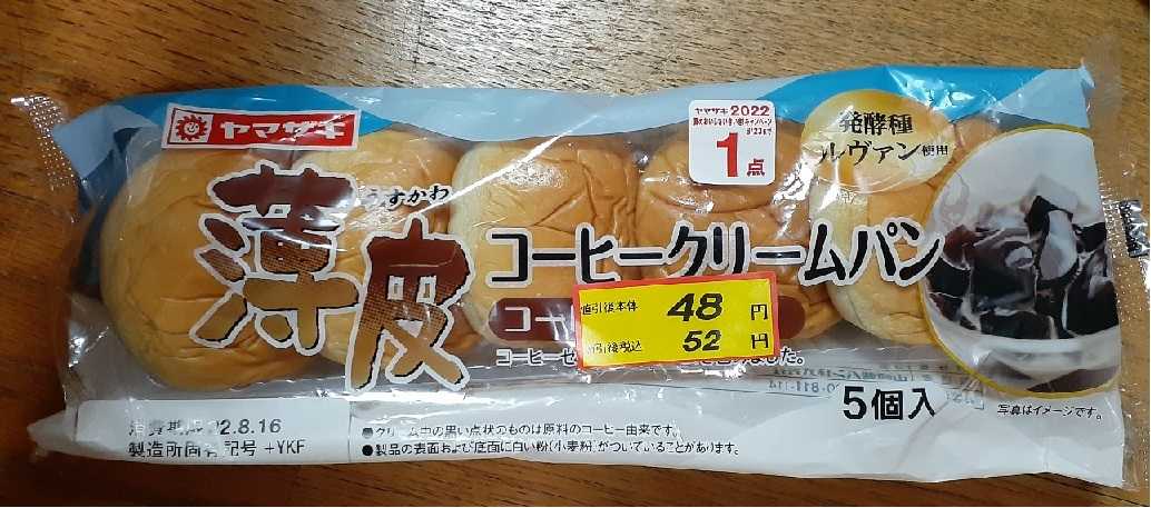 またまた見切り品品物「パン」買って来た婆ちゃん買って来たパン忘れてたパンの日付け 見た16日(午後11時過ぎ)今日や・・よく見るとこのパン婆ちゃん初めて買うかも薄皮コーヒークリームパン中にコーヒーが入ってる見づらいけれど黒く見える部分がコーヒー味もコーヒーゼリーの味だったよ17日に日付変わる前に食べたから残ったよ2個・・・も3個 食べた婆ちゃんもう食べれん言うてたこれこそ『安物買いの銭失い』でもまた買うと思うですいつもありがとです(テモ)