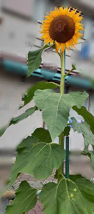 夏の花代表の一花ひまわり婆ちゃんが今年見た中で一番大きかった ひまわりひまわりの葉?婆ちゃん の自転車 前かごカバー20センチくらいか・・なとにかく大きかったらしい見た感覚で言う婆ちゃんや・・ホンマやって!(婆)そうでっか高さは2メートル以上3メートル?かもだってホンマに~適当に話進める婆ちゃんです上向いてばっかで首痛い・・いつもありがとです(テモ)