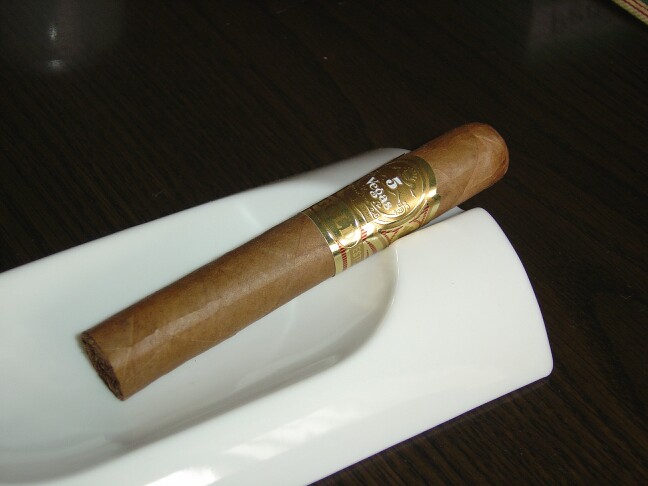 5Vegas Gold Robusto (5×50)Country: HondurasBox 20 / $49.00最初は箱で買おうとしていたがサンプラーを見つけとりあえずそれを買うことに。点火前と点火直後は若干ペンキの様な匂いを感じる。(純金のインゴットをイメージした派手な塗装の箱のせいか?)マイルドでクリーミーな喫感とコネチカットラッパーに割合多く感じられる苦味、アシュトンのクラシックマグナムの様な印象で淡白なシガーだが、さすがにアシュトンと比べると粗雑さを多々感じる。でもバンドが無ければ騙されてしまう人もいるかもしれない。後半に入るとあまり良い印象は無く終始口の中に苦味が残る様になるがエスプレッソを飲んでいたせいもあるかもしれない。ラッパーの質や加工の質が意外に高いので少し残念な感じもするが価格以上の価値はあると思う。約3cmを残して吸い終えた後の感想は、アシュトンのクラシックマグナムの70%位の感じ??平凡なドミニカ産のシガーで吸う人や時と場所を選ぶような事は無いと思うがこの安っぽく派手なバンドのデザインは人前で吸うには気が引ける。一箱$49.00、送料の$37.00は痛いがそれでも一本500円以下、二箱買えば380円位?あとは税関次第だが、どちらにしてもまた吸いたいとは思わないのでどうでもいいか....