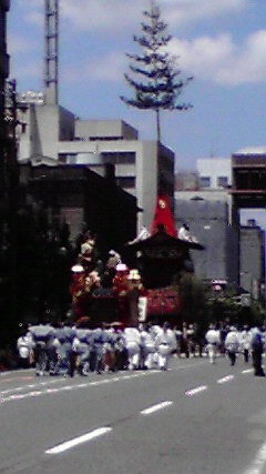 大阪に住んで〇十年、東京に住んで3年と半・・・故郷を離れてこそ、良さが見えるというか。 大阪に住んでいる頃は、京都の三大祭りに行ったことがありませんでした。というか、大阪の天神祭にすら行ったことがない、という、人ごみが苦手な私です。 が、たまたま三連休に大阪にいるので、よし、京都に行こう!祇園祭に行ってやろうじゃあないか、と気合いを入れつつ?!京都に遠征です。 その割にほとんど下調べせず、「なんか鉾見れたらいっか~」とゆるいスタート。 京阪の三条からぼんやり歩いて行ったら、おおっといきなり通行規制ってことは、まさか巡行?!と思ったら、その通り。丁度山鉾の巡行時間に合いました。 あわてて撮ったので、ピンボケの上、後ろ姿・・・ 今度は近い・・・けど、山(人が乗っていない人形などが乗っている山車)も鉾(人が乗っている)も続けざまに見れて、感激!動く美術館と言われるくらい、きれいでした。鉾や山にそれぞれ、疾病よけや勝負運や出世、縁結びや安産とそんな意味があり、ああ美術品ではないんだなぁ、とこれはお祭りなんだなぁ、と改めて思ったり。 また通りではご祝儀でしょうか、それぞれの山の代表者?に舞妓さんが品物を渡している姿も目撃できました。(というか、知識無さすぎで情けない表現ですみません) ほんと感激して、大阪からなら近いのに全然興味無く、東京に住んでからとは、そんなものなのかなぁ、と。 夕方、八坂さんのあたりを歩いていたら、御神輿がやってきました。祇園祭は1ヶ月ほど色んな行事が続くそう。宵山や山鉾巡行以外にもこうやって、あるんだなぁの夕日に照らされて、きらきら光る御神輿を見ながら、祇園祭を噛みしめていました。 巡行が終わったら解体される鉾。建物二階から鉾に橋をかけ出入りできるようにしています。職人さんが荒縄をかけて足場を作って解体していくのも、みんな見上げています。 信号機も直さないと・・・そういえば巡行中、信号機が無かったなぁ 。こちらは文明の利器を使用しています。 気温は暑い京都でしたが、珍しく湿度があまり感じられず、熱中症にもならずに堪能できました。