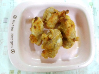 昨日の餃子に続いて、今日は「ノンフライ鶏のから揚げ」に挑戦した。日清の竜田揚げ粉を使って味付け。スペースパンに並べて魚焼きグリルへ。レシピ集をめくってハタと気づいた。「弱火」なんですと?昨日の餃子は思いっきり強火でやっちゃいましたがななるほど・・・黒こげの原因がわかったよ・・・魚焼きグリルやスペースパンに責任は無い。すべて、私が悪うございました気を取り直して唐揚げだ。ちゃんと弱火に設定して。とっても良い感じに仕上がりました。お味もばっちり。とってもジューシーな仕上がりです。満足