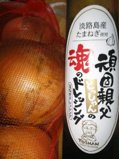 朝4時半頃かな、パパは自転車仲間と淡路島へ。淡路島を一周することを「アワイチ」というそうな。先週の乗鞍岳につづいて淡路島。まあ、乗鞍も淡路島も一年に一回のこと。2週続けてというのはたまたまなんだけど、この暑い中、物好きだね~興味のある方は、本人のブログでも見てあげてください。・・・って、まだ更新してないかな?いろいろさまざまそれなりに私的には、楽しく走って、お土産を持って、怪我などせず無事に帰ってきてくれれば文句などありませ~ん淡路島のお土産といえば、やはりこれだね、たまねぎ。それから、淡路産玉ねぎのドレッシング。こんなアップ写真じゃわからないけど、なかなか美味しそうだよ。明日にでも、シンプルなサラダでいただいてみるかな。