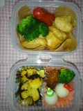 昨日の午後、電話があって、気が滅入るような話を聞かされた。なんかずっと欝々していたら、体の調子も悪くなってきた。今年初めてプールに入ったあとみたいに体がだるくなって、手がむくんできた。手のむくみくらいは別に珍しくないが、右腕全体がうっ血したような感じになって、二の腕がチクチクと痛んだ。私は2年前に右脇のリンパ節をとってしまっているので、手のむくみには気を付けろと言われている。幸いにも朝には、おさまっていたのだけど、正直焦っちゃったよ。気を付けなくっちゃね。さて、今日も地味なみしゃお弁当。鶏むね肉の味噌マヨ炒め。夕食のおかずを冷凍保存していたものをレンジで解凍。タコさんウインナー。いつもの方がいいと言われたけど、最後まで使わないといけないしね。せっかく赤なので、めげずにタコさんにした。ブロッコリー。さつまいものグラタン。みしゃおの大好きなうちの定番。魚焼きグリルで焼いたら、ちょっと焦げた。ちなみにうしゅけはお芋さんを嫌がるので、別のグラタンを入れた。ミートボール。加工品。うずらたまご。みしゃお限定。可愛いピックをさしてみた。ブロッコリー、再び。今日、大阪は雨妹がもえぞ~とともにみしゃおを駅まで送ってくれた。雨だろうと雪だろうと自転車通学のうしゅけは、「甘いっ!」と少々不満げ。まあね、ママもちょっと思ってるよ