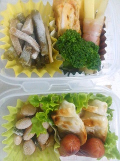 昨日、中間考査が終わったうしゅけとみしゃお。今日はどっちも遠足だ。うしゅけは、万博公園近くの某ホテルでテーブルマナー。みしゃおは、琵琶湖の湖畔で飯盒炊さん、バーベキュー。みしゃおはいつもより早く学校に集合なので6時過ぎに出て行き、うしゅけはいつもより遅く現地集合なので、9時頃出て行く予定。JR茨木からバスに乗っていく予定だったが、天気が大丈夫そうなので、友達と現地まで自転車で行くらしい。お弁当が不要のスバらしい遠足だねパパ弁当公開最終日。地味なのはいつものことだが、いつにも増して地味弁当になってしまった。しかも、写真傾いてるし。グリーンリーフ。豚肉とアスパラの炒めもの。ステーキソースで味付け。キャベツと厚揚げの炒め物。冷凍保存していたのをそのまま。アミエビ入り卵焼き。ブロッコリー。肉巻きチーズ。冷凍食品。今日は夜にうしゅけを整形外科に連れていかなくちゃいけない。予約をキャンセルして日程を変更したのだが、もういっぱいで予約がとれなかった。飛び込みで行くので、どれくらい待たされるかわからないんだよな。夕食はカレーにするかな。
