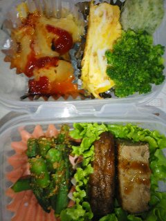 今日はみしゃおの学校で、いろいろと忙しい一日になる。午前中は授業参観。1時間目から4時間目までだが、別にずっと見ている必要はないので、2時間目くらいに行く予定。そして、午後にPTA総会。お昼休みに食堂行ったりすると大変混雑するに違いないし、お弁当持参しても落ち着けない気がする。だから4時間目のときに、とっちゃんのママと一緒に食堂か外かでランチ。その後、学級懇談。こういうときでないと、お友達のお母さんに会う機会がないしね。終了予定時刻は16時20分。みしゃおのお弁当。相変わらず、シンプル感満載ですな。みしゃおの大好物、塩のお肉。塩麹に一晩漬けておいた鶏肉を、今日は魚焼きグリルで焼いてみた。そのため焦げ目がついて、ちょっと美味しそうに見える。ブロッコリー。かぼちゃの煮物。冷凍保存したものをそのまま。アスパラのピーナッツ和え。アスパラをチンして、キューピーのピーナッツ和えの素を使ってみた。つまみ食い・・・じゃなくて味見をしたら、けっこうイケる。しゅうまい。冷凍食品。たこさんウインナー。ちょっとがんばってみた。さあ、九時くらいには出かけたい。大急ぎで用意しなくっちゃ。