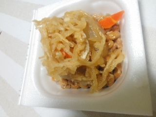 小さい頃、うちの子は三人とも食が細かった。幼稚園にあがるまでは、納豆とヨーグルトと緑の野菜ジュースだけで育てたといってもいいくらいだ。特にみしゃおは三食のみならず、おやつまで納豆ご飯。以前ほどでもないが、今でも納豆は常備している。そして相変わらず、すごい勢いで消費している。納豆が安くてよかったと心から思う。子どもだけではなく、私も納豆好き。関西人だけど、納豆好き。そして最近のお気に入りの食べ方がこれ。納豆+添付のタレ+たまねぎ氷(凍ってないけど)+切干大根の煮物これを混ぜ混ぜして、ごはんにのっけて食べるのだ。おいし~よ切干大根は甘酢漬けのときもある。こっちも美味しい。ちょっとおまけの話。私は子供のころから普通に納豆を食べて育ったが、母は納豆を食べたことがなかったそうな。なのになぜか、私がお腹にいるときに、急に食べたくなったんだって。不思議だね。