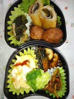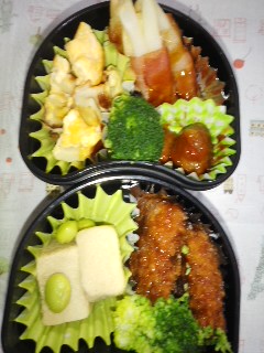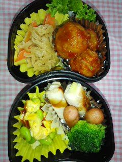 ご無沙汰してしまった。いろいろあって、ドタバタしていたのは間違いないんだけど、まあ、サボっていたというべきかな。PC争奪戦ってのもあって、なかなかPC前に辿り着けないのもある。いずれにせよ、元気です。今日、うしゅけは昼休みに何やらあるらしく、お弁当を食べられるかどうかわからないらしい。うしゅけの学校は、休み時間であればいつでも食べてもいいので、他の休み時間に食べればすむと思うのだが、時間が短いと落ち着けないか。仕方がないので、おにぎりを持たせた。短時間でお腹もふくれるものね。ということで、今日はみしゃおのお弁当ひとつ。ところが、肉ない、魚ない、ストックないで大ピンチ。昨日ね、お弁当のために何か買ってくるかと腰をあげたところ、うしゅけに弁当なしの話をされたもんだから、そのままストンと腰を落としてしまった。ちくわ入り炒り卵。ポテトとチーズのベーコン巻き。コープ加工品。オーブントースターで。ミートボール。ブロッコリー。高野豆腐の含め煮。夕飯の残り。ソースとんかつ。冷凍食品。ブロッコリー。必死で冷蔵庫をを探って作ったような気分だったのだが、できあがってみれば、たいして変わらなかった・・・・。準備して作っても、しなく作っても、所詮この程度・・・・