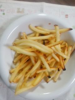 今日、そしゅけは水泳教室。プールに行く前に、何かお腹にいれておかなきゃと急いでつくった。なんの変哲もないフライドポテトだけど。冷凍のポテトを魚焼きグリルで焼いただけ。そしゅけはケチャップかけるのが好きなので、塩などの味付けもなし。油を使わなくても、それっぽくできあがるでしょ?