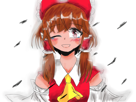 みしゃおのペンタブレット使用の作品。第2弾。これも何かのキャラらしいのだが、ご覧の通り目が赤い。「みしゃお、どうした、結膜炎か!?眼科行け、眼科。」と、からかっていたら、「こういうキャラやの!」と、みしゃおが思いのほかムキになった。面白くなって、「その後ろのん、おあげさん?うす揚げやんな!」とたたみかけたら・・・・・みしゃお、すねた
