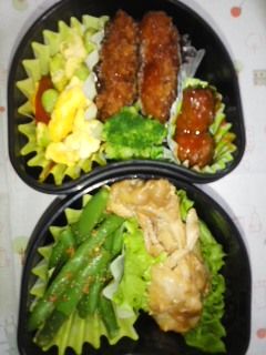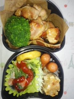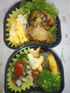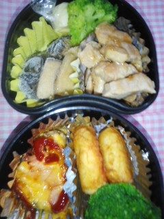 先週、結局二日学校を休んだうしゅけ。土曜日には復活したのだけど、土曜日の夜から今度はみしゃおの具合が悪くなった。塾が終わってからなのだが、「吐きそう」と半泣き状態で電話してきた。薬をの飲んで、昨日一日眠りまくって・・・・。生きてるのか!?と確認したくなるほどよく寝てた。でも、夜になってまた「吐きそう」と半泣き。うしゅけは胃腸が悪いのになぜか頭痛だったが、みしゃおは胃にきたか。うしゅけからもらったか?という気がしないでもない。というわけで、今日のお弁当はうしゅけの分だけ。ピーマンと竹輪のめんつゆ炒め。冷凍保存していたものをレンジで解凍。チーズハンバーグ。冷凍保存していたハンバーグにチーズをのっけて、レンジで解凍。煮豆。冷凍保存していたものをそのまま。シュウマイ&ウインナー。魚焼きグリルで。ブロッコリー。今日も火を使わず