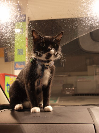# 1416年に1回の予防注射。午前中に着くために朝のうちから出かけたけど車の中、モワーっと暑い。エアコン入れて運転席と助手席はすぐに涼しくなったけど後ろの席はスイッチ入れてなかったのでずっと暑かったみたい。後ろも涼しくなるまでこっちおいでー。前はだいぶ冷えてるよ。と呼んだら涼みに来た。しばらくここでじーっとしてほどよく体温下がったら自分の席へ戻って行った。汗で びっちょりの足あと残ってた。つづく ※各写真の上にマウスポインタを置いて 2秒ほど待つと、くつしたのもうひとつの声をお楽しみ頂けます。HOME● はじめましての方 ●くつした プロフィール名前:くつした性別:メス誕生日:(推定) 2004年6月20日 (公園生まれ)体重:平均2.9kg特技:おすわり・まて ねむねむ光線 おっきいうんこ趣味:旅行 毛づくろい「 ちょっとした読み物 」(くつしたの生い立ち) 今回の写真は これで 撮影しています。 CASIO W53CA● 1年前の くつした ●オクラ牛モモ(8/6)日暮れ後は快適。(8/7) FARO(ファーロ) コーヒードリッパー&ポット 3,675 円 スッキリ感がたまらん。FARO(ファーロ)