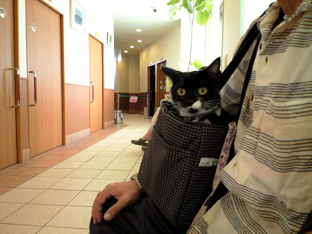 # 1417小一時間ほどのドライブで動物病院に着いた。→ わざわざ遠い病院へ行くわけ午前の受付は 11時半までなのだけど駐車場に着いた時点ですでに 11時29分。とりあえず私ひとりがダッシュして病院へ入った。まさに、受付整理券の発券機の電源を落とそうとしている瞬間だった。「あっ、もう、ダメですかね・・・」と、声を掛けたら小声で 「今回だけいいですよ」 と通してくれたので、何とか午前の部で受付を済ませることができた。「午後からあらためて受付しても同じかも」と言われたとおり待合室は そこそこ混んでいた。この病院、大きな施設なので犬と それ以外の動物で待合室が分かれている。こちらは ほとんどが猫なのだけどたまにフェレットとかウサギとか小動物も見かけたりする。いくつかある診察室のドアが開いてふと見ると、何か大型犬ぐらいの大きさの体と猫や小動物ではない足が見えたので何だろうと思ったら、ヤギだった。まだ若そうなヤギは、飼い主さんの荷物やら帽子なんかをくわえては放り投げるという元気いっぱいのワンパクぶりを見せながら帰って行った。受付したのが最後だから当たり前なんだけど、待合室に誰もいなくなって一番最後に くつしたが呼ばれた。まず最初に体重を量る。相変わらず 2.96kgだった。「体重、変わりないですね」という話から始まって、先月の おしりの出血 についてその後の経過を聞かれたけど特に出血は見られず体調も変化がないことから「とりあえず このまま様子を見ていくことにしましょうか」ということになった。で、今回の本題の 予防注射。毎年、注射の翌日は だるそうにしてるし首の注射跡も少し腫れて触ると痛がったりするのでどうしたもんかと考えていた。若いうちはいいとしても歳とって体力落ちてきたら今よりもっと負担になるのかなーとか心配したり。チラと読んだ本によると、『猫白血病ウイルス』 なんかは大人になると抵抗力ができて感染しにくくなるらしいしその 『猫白血病ウイルス』 のワクチンを施された部位には悪性の繊維肉腫ができることもあると書かれていた。腫瘍に関しては、どのぐらいの確率でそうなるのかや本当にそれだけが原因なのかはその本の記述だけではよく分からないけれど、とにかく体への負担が大きそうな『猫白血病ウイルス』 のワクチンは抜いてもいいかな、と思えてこれまで ・ 猫汎白血球減少症 ・ 猫ウイルス性鼻気管炎 ・ 猫カリシウイルス感染症 ・ 猫白血病ウイルス感染症の4種混合ワクチンを受けていたのだけど、で、どうだっけな?と調べてみると3種混合ワクチンにはちょうど 『猫白血病ウイルス』 が含まれていない。先生には「いつもダルそうにするので 減らしてみようかと思うんですけど・・・」と伝えたら、「じゃあ 今年から3種にしましょうか」と軽く応じてくれたのでそうすることにした。注射は あっという間に終わって、あれだけ待ち時間あったのにあっけないわというぐらいで診察室を出た。帰り道も 帰ってからも平気そうで、いつもなら だるそうにしているその日の夜~翌日も ケロっとしてたし注射の跡も腫れなかったらしく触っても全然痛がらなかったので3種に減らしたのは正解だったかもしれない。 ※各写真の上にマウスポインタを置いて 2秒ほど待つと、くつしたのもうひとつの声をお楽しみ頂けます。HOME● はじめましての方 ●くつした プロフィール名前:くつした性別:メス誕生日:(推定) 2004年6月20日 (公園生まれ)体重:平均2.9kg特技:おすわり・まて ねむねむ光線 おっきいうんこ趣味:旅行 毛づくろい「 ちょっとした読み物 」(くつしたの生い立ち) 今回の写真は これで 撮影しています。 CASIO W53CA● 1年前の くつした ●盆おどり連れてって(8/7) 能作(のうさく) デザイン風鈴 「バンビーノ/バンビーナ」 2,940 円 風に揺れたら楽しそう。能作 風鈴