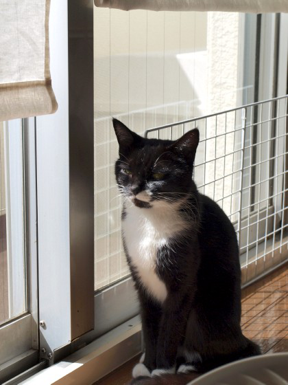 # 1452窓に日が当たってのどかな午後。くーちゃんなめなめしながらリラックス。ひなたを見るとついつい寄ってきちゃうのだね。・・・・・・・・あれ?ひなたぼっこしてるつもりになってたけどこれ、窓に貼りついてる布のせいでくーちゃんには直接日が当たってないよね。と 若干気付いたりしたけど、それでもやっぱりまだここにいるのだった。 ※各写真の上にマウスポインタを置いて 2秒ほど待つと、くつしたのもうひとつの声をお楽しみ頂けます。HOME● はじめましての方 ●くつした プロフィール名前:くつした性別:メス誕生日:(推定) 2004年6月20日 (公園生まれ)体重:平均2.9kg特技:おすわり・まて ねむねむ光線 おっきいうんこ趣味:旅行 毛づくろい「 ちょっとした読み物 」(くつしたの生い立ち) 今回の写真は これで 撮影しています。 OLYMPUS E-420● 1年前の くつした ●くじらとれんこん(10/22)パソコンの横(10/25)靴箱の扉、作成中。(10/26) 本格派家庭用ホームベーカリー 9,240 円 置いて絵になる黒。黒ホームベーカリー