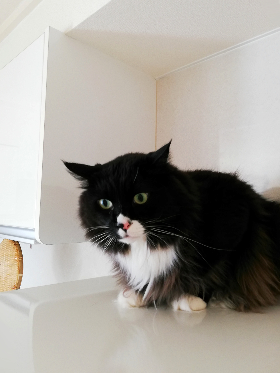 # 3250 (4/3)西日を浴びながらその太陽のある方向を見つめているくーちゃん。レンジの上で夕日のひなたぼっこ。そのためにここへ乗った。ながーいうでをのばしてリラックス。普段は毛がもっさりで手足が短く見えがちだけど、ほんとはこんなに長いのだ。ほんとは小顔でほんとは手足が長くてシュッとしたモデル体型なのだよ、ほんとはね。おっきいくーちゃんもよくここで西日を浴びていた。夕方の日光浴スポットなのだな。日が陰ってきてだんだんひなたじゃなくなってきた。あとちょっとだけ…ギリギリまで日に当たっていたいくーちゃん。さて、春の陽気でお散歩が捗る4月の頭。あちこち歩いては何気ない写真をつい撮っていた。毎日のようにどこかで桜を見て写真に収める。なんだろねー、なんか見るだけじゃもったいないような気がして、残しておきたくなるのだな。冬は寒くて写真を撮る手が冷たくなるから、夏は暑くて何をするのも億劫になるから、そんなわけで春と秋の写真は多くなりがち。いつも歩いている何でもない道沿いにも花が咲くとあー、こんなとこにと、初めて気付いたりする。買い物だけのつもりでもつい、回り道したりして。= = = = = = = = = =さてー、2年前の2歳くーちゃん。おかえり912日目。 → コロコロ気持ちよくなってきた 背中コロコロされるくーちゃん。 → 夜の冷蔵庫だらりん 冷蔵庫の上で脱力くーちゃん。2023年4月24日の写真。= = = = = = = = = =おっきいくーちゃん。今日は、2009年。2009年4月24日の写真。 → タラと野菜の作り置きごはん 【猫ごはん】 くつしたの昼ごはん。できたて作り置きごはん。中身は、タラ、鶏ムネ肉、玄米、ごぼう、かぼちゃ、ひじきなど。大人は、ラーメンライス。えっ、インスタントラーメン食べてんの!?そわそわしながら食べるくつした。- - - - - - - - - -ランキングサイト参加中 LINEスタンプ Tシャツとか 買ったものと欲しいもの