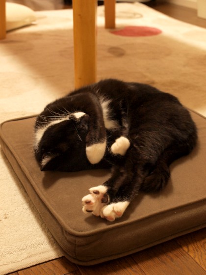 座布団の上で寝てる。