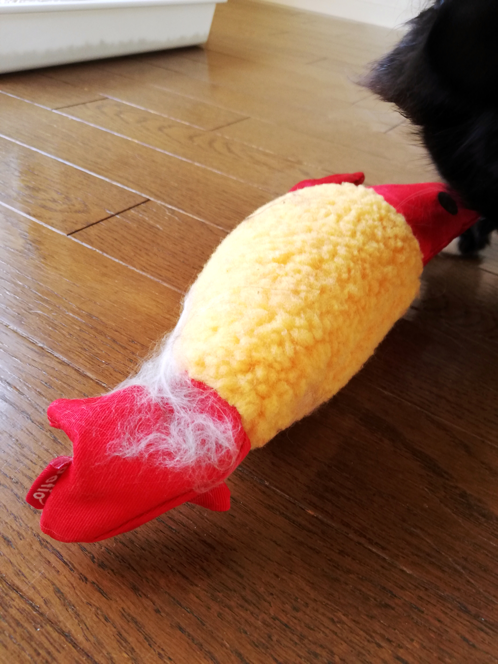 よだれのあとだらけ。