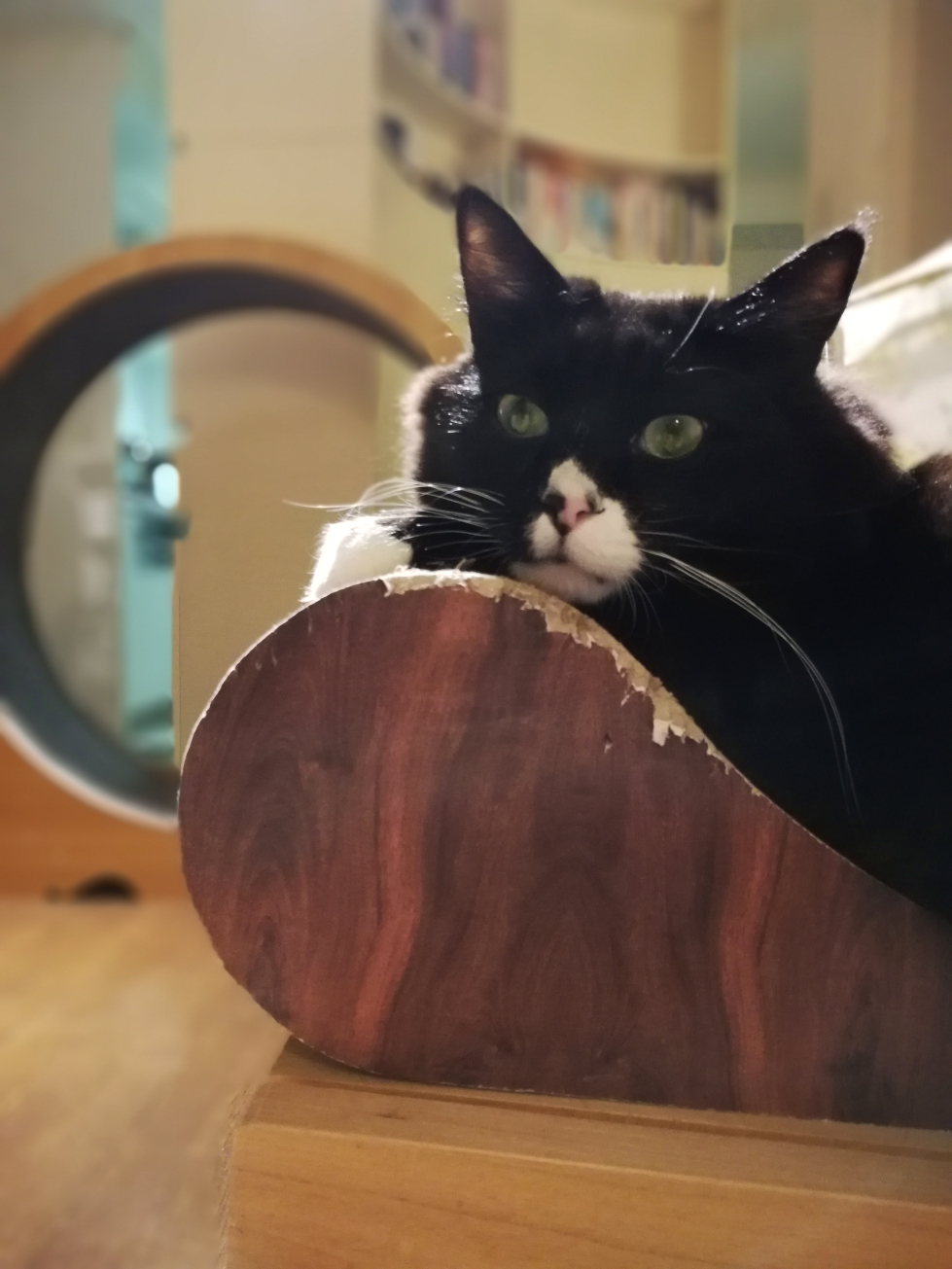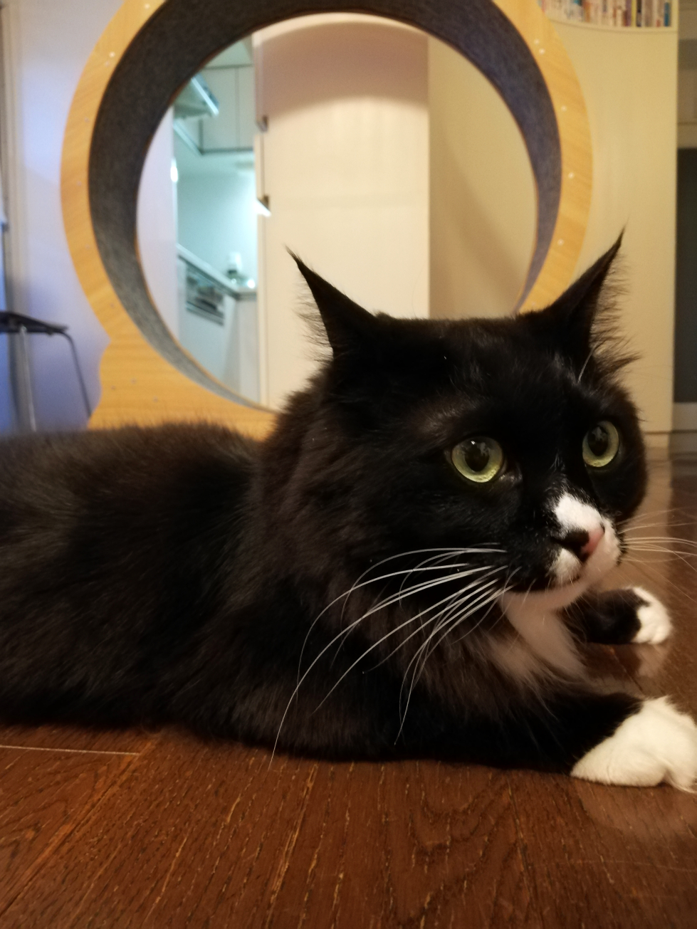 回り込んで確認するくつした。