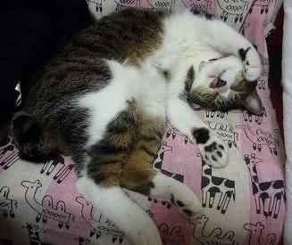 12連勤を終え、ひさしぶりのお休みです。夜は仲のいい職場の人たちが我が家にやってきて、ねぎらってくれることになりましたそうなるとまた人見知りのにゃんたが心配ですが…人間のようなあおむけ寝でくつろぐまめたろう。態度が尊大です