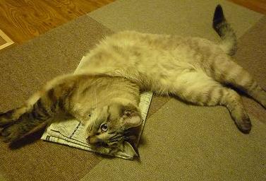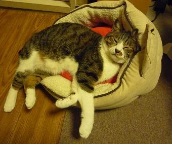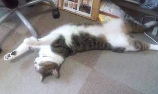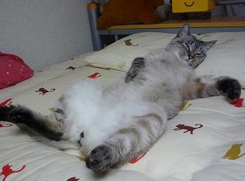 暖かくなってきて、本領を発揮し始めたねじれるまめたろう。あいかわらず見てる人間の背筋が痛くなるようなねじれっぷりです。そのまま寝ちゃいます。