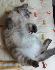 夏を目前に控えて、最近とっても暑いですね汗だくになりながら仕事をしています。昼出勤するときは日差しがきついのに、夜帰るときは薄着だと寒いんですよね風邪ひかないようにしなきゃ。昼は伸びきって寝ていても、夜はまだふかふか冬ベッドのお世話になっているにゃんた。なんかいろんなもの(またたびポワソン&ビーズクッション)に埋もれながら寝ています。お気に入りに囲まれて幸せなにゃんたです。