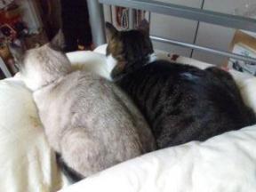12連勤10日目。しかも日曜なので忙しい…いろいろとピークが来ています。もう少し!!にゃんまめの食事風景。にゃんたは食べるスピードがとっても速く、まめたろうはとっても遅い。まめたろうの食べ方は下手すぎて、見ているとイライラハラハラします。カリカリを1粒口に入れて、カリッと噛む。砕けたカリカリが全部口の外に落ちる砕けて細かくなった1粒をまた口の中に入れるさらに噛んで、飲み込む(たまにまた落とす)~繰り返し~というわけで、まめたろうは食べるのがと~~~っても遅いのです。野生では絶対生きていけません…そんなまめたろうが食べ終わるのを、じっと待っているにゃんた。見守っているわけではなく、食べ残しにありつこうとしているだけですが…でも、いくら食べるのが遅くても途中で奪ったりしないのがにゃんたの優しさ