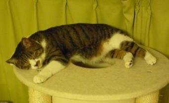 暑い!!昨日は今年初めての真夏日になったところもあるほどですもんね。今日もいい天気です。今日のにゃんたは北向きのリビングのキャットタワーで寝ています。南向きの部屋の暑さに耐えられなかったのでしょう。たるんだおなかが穴に落ち込んでいるように見えますが…うん、気のせい気のせい「今、なにか失礼なこと言わなかった?(チラッ)」うん、気のせい気のせい