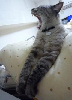 午前の勤務を終えて一時帰宅。まめたろうはお休み中だったらしく、お出迎えしてくれませんでした。ロフトベッドの上からこちらを一瞥して大あくび。これから私も夕方の出勤に備えてお昼寝の時間です