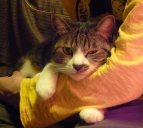 にゃんたも、まめたろうも、自ら人の膝の上に座ってくるときはいいけれど、強制的にだっこされるのは嫌いです。けど今日はおとなしくしていました。なんか嫌な顔してるのは気のせいです。だって私の腕をがしっとつかんで離さないもの猫も人間も至福のときです……たぶん