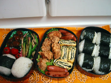 ・無洗米玄米+白米+明太子ふりかけ    ・ほうれん草入り出し巻き玉子