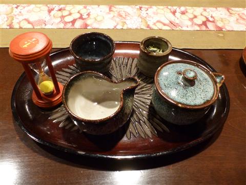 美観地区を散歩。吉井旅館直営のうなぎ専門店、『乱亭』にカフェができたらしいので行ってました。頼んだのはケーキセット。和三盆ロールにコーヒーのセットです。ただ、日本茶が飲みたかったのでダメ元でコーヒーを日本茶に変更できるか聞いてみるとOKとのこと。日本茶「かりがね」「かりがね」がよくわからなかったので聞いてみると、玉露の茎の部分のことで、葉っぱの部分とは味が違うらしい。相方が葉っぱの方を頼んだので、飲み比べてみるとたしかに違う。お茶に詳しくなくてもはっきり違いがわかりました。砂時計が付いてますが、砂時計の右の入れ物に熱湯を入れて、煎茶に適した70度から80度程度に湯を冷ますための1分計です。和三盆ロール適度な甘さでおいしく頂きました。30分ほどゆっくりして席を立ちました。今度はうなぎを食べに来たいと思います。