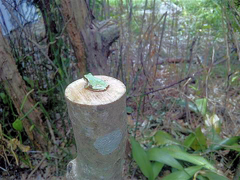 哀愁漂うカエル君。いい場所見つけたね(≧∇≦)b どこを見つめているんだろう?前から撮ろうとしたらどこかに行っちゃったけど、後ろ姿はばっちりいただいたので、待ち受けにしちゃいました。