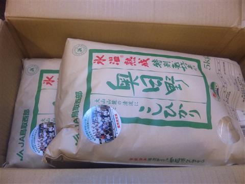 JA鳥取西部様よりお米が10kg届きました。氷温熟成特別栽培米奥日野こしひかり 5kg×2注文した覚えはないのに何だろう?納品書とか入ってないし・・・すぐにわかりました。鳥取の宝探しの賞品だ。いや、一緒にやったスタンプラリーか?スタンプラリーは賞品選べた気がするから、やっぱり赤い鳥?わかってませんでした・・・(笑)まぁその辺のどれかだろうと無理やり納得。だって、何も手紙とか入ってないんだもん。もしかしたら箱の底にあるかもしれませんが、イマサラです。来てすぐに相方の実家に献上です。しかし、またちっちゃな運使ってしまった。宝くじ当たったらいいのに・・・ちなみに”氷温熟成米”とは、「一年中『旬』の新米のおいしさを保たせるために、秋に収穫した玄米を氷温で一定期間熟成させた後に、精米したお米のこと」だそうで、通常米に比べて保水性が高まっていて、、このお米を炊くと、ご飯の甘みやねばりが増し、冷めてからもパサつきにくくなるそうです。氷温熟成米 こしひかり10kg【1等米】
