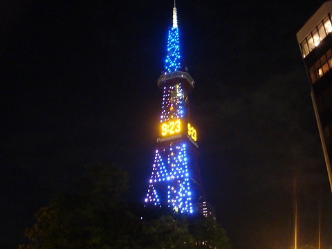 ・・・にはまだ早いので大通公園へ。テレビ塔が光ってました。塔があったら登りたいってことで、高いところへ。いい眺めです。意外と登ってる人多い。10時過ぎまで楽しんで下界へ。歩いてススキノ方面に向かいました。さすがの日本三大歓楽街。いろんなところがキラキラしてます。ネオンとか、出勤中のねーちゃんとか・・・夜はこれからな人達が沢山います。しばらくうろうろした後、ピンクな店・・・は外から見学だけしといて、地下鉄駅近くのすすきのビルへ。焼き鳥屋に入りました。飲みすぎてホテル帰って即寝です。~つづく~