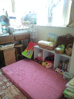 今は双子ベビーの物が増え、こんな感じにベビースペースがあります~†