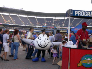 中に入ると、やっぱりアメリカと日本の野球場は雰囲気が違う!アトランタはデルタ航空のハブ空港でもあり、スポンサーなのかな?デルタ飛行機君?がお出迎え。日ごろからアメリカ人との体格の差を感じてはいたけれど、選手を間近に見ると更に実感。飲み物・食べ物を用意していざ観戦!交代タイムにいろいろ盛り上がりコーナーがあり、『come kiss』はスクリーンに映されたカップルはkissする、とか。でも、そんなコーナーなくても基本的にみんなノリノリでアメリカの人たちは明るいです試合は逆転勝ち2-1。応援団の勝利の舞も見れて大満足でした