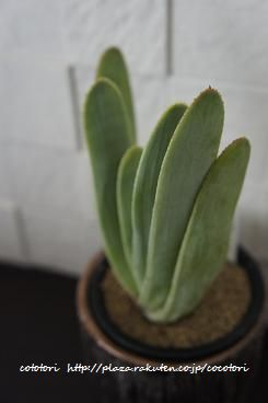 連れてけ~~~!!!と、聞こえた気がしまして・・・・・・(勝手な妄想)連れて帰ったこの子プリカティリスと言うんだそう。アロエの仲間です^^ ちょっと調子に乗ってまたまたグリーンを増やしちゃいました^^;でも、お水もほとんどいらないそうだし~・・・き、きっと大丈夫よね(汗)旦那さんは、全く好みじゃ無かったようですが玄関に飾ってます(笑)ちょこっとだけハロウィンの飾りつけしました~♪写真がいっぱいになりそうなので、また明日UPします☆お時間がありましたら、お付き合いください。読んだよ~!のポチ☆、よろしくお願いします^^にほんブログ村★私は近所の園芸店で購入しましたが、楽天でも取り扱いあるようです。これもかわいいな~~!!