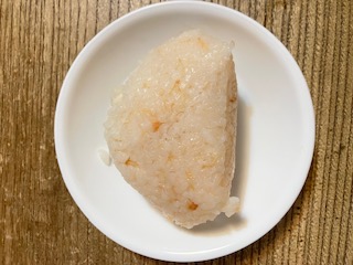 袋ごと握って三角おむすびができる商品だけど、お皿に出して食べました。