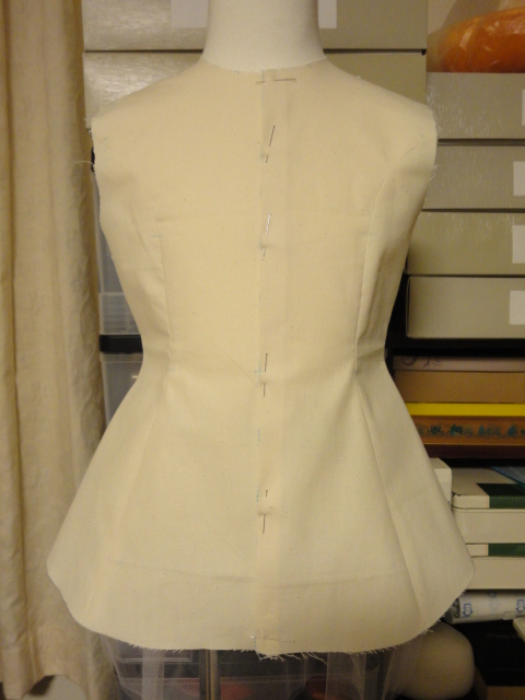 まだ裾の始末はしておりませんが。これはベストの丈が決まったらそれに合わせて調整します。袖をカフス付きの長袖にすることにしたので、本に掲載の Boy's C プルオーバーシャツのパターンを、長さだけ変えて袖の幅はそのまま使うことにしました。フリンライダーは袖を下ろすとたっぷり目のギャザー袖ですが、まくりあげやすいように細めの袖にしました。カフスは掲載のカフスよりも幅を狭く(2.0cm)しました。前後身頃は掲載のパターンを使用し、スタンドカラーのパターンを作図しました。 スタンドカラーの作図の仕方はP.32に書いたのですが、やはり手順にしたがって写真で説明したほうが分かりやすいと思いますので、今度mixiアルバムに載せますね。