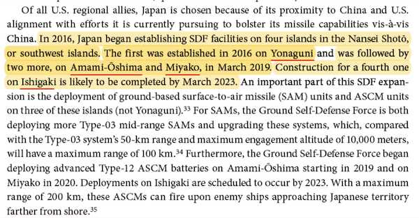 。自衛隊は2016年に与那国島でミサイル発射施設を建設、19年には奄美大島と宮古島、そして23年には石垣島でも施設を完成させた。