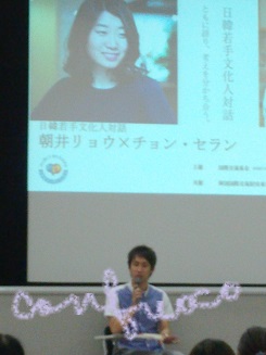 先日の国際ブックフェア関連イベント法政大での韓国の作家カン・ヨンスク、キム・オンスと中沢けい鼎談とはまた趣が違って...朝井リョウ、カッコいい!チョン・セラン、カワイイ~❤早稲田で「日韓若手文化人対話―ともに語り、考えを分かち合う」へ。カッコいい&可愛い!がまず飛び出し。セランさんのトークが可愛すぎてきゅん死、萌(〃〃)朝井さんにもらったチョコを一粒ずつ食べながら朝井さんみたいな、いい文章が書けるかな?と考えている...と...(〃〃)K-Popの世界と通じながらも...日韓の若手作家の言葉に対する考えも伝わりほんわか、楽しい時間だった。印象的だったのは構造的に似て語彙も似ている韓国語と日本語、ふたつの言語だがセランさんの文を読んで「この単語とこの単語をこのシーンを表現するために組み合わせて使うのか...」と朝井リョウさんが思った、というお話。単語と単語の組み合わせのカルチャーショックとは興味深い。きっと日本語脳からは出て来ない表現、発想なのだろう。セランさんの小説読まなきゃ...まじめな話、朝井氏は「嫌悪に反対する作家でありたい」とも。共感できないものに会うと自分の輪郭が変わる気がするから...と。Transformationを恐れないのですね!セランさん韓国はweb小説もあるしみんなe-book好き、朝井氏手書きへの愛を信じている人が日本に多い、と。日本では履歴書はまだ手書きです、と朝井氏が話すとセランさんは韓国では10年位前にもう見なくなったような...と。IT化の進度・深化の日韓間相違も興味深い。ところで、戸山キャンパスにもしっかり戦争法案反対のパネルいくつか。東大駒場キャンパスにも安保法制反対のパネル。この戦争反対の流れは翌月の能楽にも続く...延世大学校内に震災後はこんなgraffittiが。to be continued...!?buzz KOREAClick...にほんブログ村 韓国映画にほんブログ村 映画にほんブログ村 映画評論・レビューにほんブログ村 韓国情報にほんブログ村 K-POPにほんブログ村Copyright 2003-2025 Dalnara, confuoco. All rights reserved.本ブログ、サイトの全部或いは一部を引用、言及する際は著作権法に基づき出典(ブログ名とURL)を明記してください。無断で本ブログ、サイトの全部あるいは一部、表現や情報、意見、解釈、考察、解説ロジックや発想(アイデア)・視点(着眼点)、写真・画像等もコピー・利用・流用・盗用することは禁止します。剽窃厳禁。悪質なキュレーション Curation 型剽窃、つまみ食い剽窃もお断り。複製のみならず、ベース下敷きにし、語尾や文体などを変えた剽窃、リライト、切り刻んで翻案等も著作権侵害です。