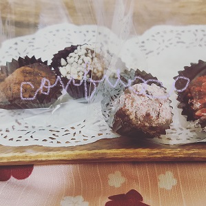 トリュフ製作。気温が高いせいかキレイなまんまるにならなかった...(。>﹏