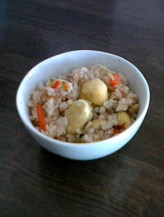 昨日の夕飯に栗ご飯をつくりました~!!秋を感じますね。今日のお昼ご飯は、昨日の残りです。栗ご飯とさといもの煮物です。ちびちゃんが寝てくれたので、平和な時間を過ごしています。今日は、後で玄関の花壇をきれいにする予定♪