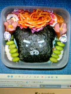 今日は娘のバス遠足の日です。朝からがんばって?弁当を作りました!といっても毎日だんなさんの弁当は作っています。(*^▽^*)ゞ 遠足の内容は・・・ 8:45 小学校発 9:15~鹿野ファーム (ハム、ソーセージなどを作っているところです)10:00~周南北消防署11:00~女子道社 (おみくじを作っているところです)12:15~鹿野せせらぎ公園 (昼食)14:00 小学校着こんな感じです。全部近場です・・・。数日前に友達とおやつを買いに行き、とても楽しみにしていましたので天気もよくて、本当によかったです(*^ワ^*) 「キャラ」弁を参考に作ってみました~♪写真、下手でごめんなさい~(´_`。)