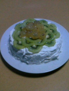 昨日は、だんなさんの誕生日だったので、スポンジケーキを作りました。いつもバースデーケーキはお店で買うのですが、今回は珍しく作ってみました。●材料(20センチ型) 卵4個 砂糖100g 薄力粉120g バター40g下準備 湯せんのお湯を用意する(人肌) 砂糖と薄力粉をそれぞれふるっておく 型の内側に、型に合わせて切った紙を敷いておく1.バターをレンジでチンして溶かしバターを作る 冷めないように入れ物ごとお湯につけておく2.オーブンを170℃に余熱する3.卵をボールに割りいれ、砂糖を加える 湯せんしながらハンドミキサーでひたすら泡立てる (10分くらい)4.泡立てたときの波の形が消えないくらい残るようになったら 湯せんからはずしさらに泡立てる5.ふるっておいた薄力粉を入れる6.ゴムべらでさっくりと手早く混ぜる(つやがでるまで)7.あたためておいた溶かしバターを流し込み、見えなくなる 程度にさっと混ぜる8.型に生地を流し入れ、170℃のオーブンにすぐ入れ、 25~35分焼く9.焼けたら出し、冷めて落ち着くまで待つ 冷めたら取り出し、紙をはずし、ビニール袋に入れて冷蔵庫へ 時間があれば一晩、なければできるだけ長くその状態で スポンジ内の水分を逃がさないようにし、デコレーションする夕飯の後に娘にデコレーションしてもらいました。苺がないので、ぶどうとキウィです・・・生地はちょっと粗かったけれど、おいしかったですよ。まだ半分冷蔵庫に残ってます。1日置くと、またおいしくなるんです!ちなみに、だんなさんへのプレゼントは「腕時計」の予定です。一緒に買いに行く予定なので、まだ渡していません・・・娘からは手紙をもらってました(*^-^*) なんか忙しい1日でした。