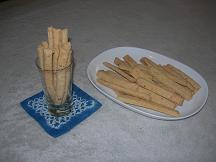 前に作ったおからクッキー(明太子味)の応用で、おからポッキーを作ってみましたレシピ、のせますね。●おからポッキー(チーズ味)の作り方●<材料> スティック約60本分おから 200g薄力粉 200g砂糖 20g粉チーズ 30gマヨネーズ 70g豆乳 約50ccクレイジーソルト(ブラックペッパー&ソルトでもOK)適量※多めにつけると、おつまみみたいでおいしいです1 お皿におからを入れて平たくして、レンジで5分加熱する。2 ボウルにおからと薄力粉、砂糖、マヨネーズ、粉チーズを入れて混ぜる。豆乳を少しずつ加えて手で練りながらひとまとめにする。3 まな板の上などに生地をのせ、めん棒を使って伸ばす。上にクレイジーソルトをふりかけて、麺棒で押さえて生地につけて、適当な大きさに切る。手で転がしてポッキーみたいに細長くする。シートを敷いた天板に並べる。4 200℃のオーブンで約20~25分位焼けば出来上がりです!(焼き色を見て調節しましょう)※今回は量が多かったので2回に分けて焼きました。半分の量にして作ってもいいかもしれませんね。娘の友達がたくさん遊びに来たので、早速子供達のおやつになりました~右側の和風のお皿は私の手作りなんです。。。また陶芸、習いたいな~