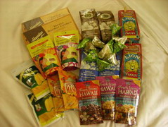 【2010年4月26日(月)・三日目】ラニカイバス&ボディで買い物しただけで結構満足。今年は「ムームーヘブン」も行かず、インテリアショップとか雑貨屋を少し覗いただけ。(クーラーが強すぎて凍えそうにならなければもっとゆっくり見たかった)けれど何気なく入ったロングスで、またまたコーヒーとナッツを大量購入・・・。だって安かったんだもん♪ここまだカイルアで、今からバスを乗り継いで帰らなきゃだし、大荷物は避けたかったのに、こんなに買っちゃった・・・でも「ライオンコーヒー」が今までチェックしてたどのお店より安かったし、見たこと無い可愛いパッケージのコナコーヒーも凄く安くゲットできたし、ナッツもチョコも、ドライマンゴーも、パンケーキミックスも、ウォルマートやABCよりも安かったんだもん♪パンケーキミックス、もっと買ってくれば良かったよ~。(また帰国してすぐ後悔・・・)量も丁度良くて、作ってみたら凄く簡単に美味しくできたから、友達にもあげたかったなぁ。自分用にももっと欲しかったし。こうしてまた、次回のハワイ旅行で買いたいリストに重くなるものが増えたのでした。